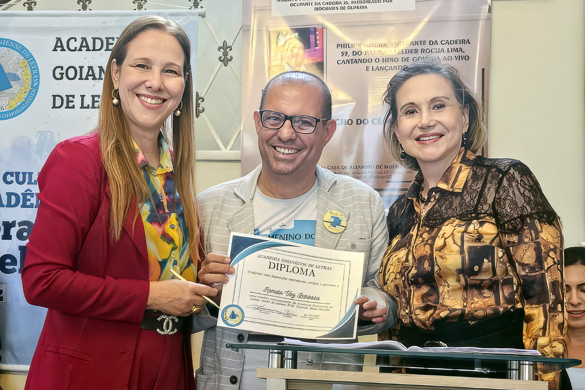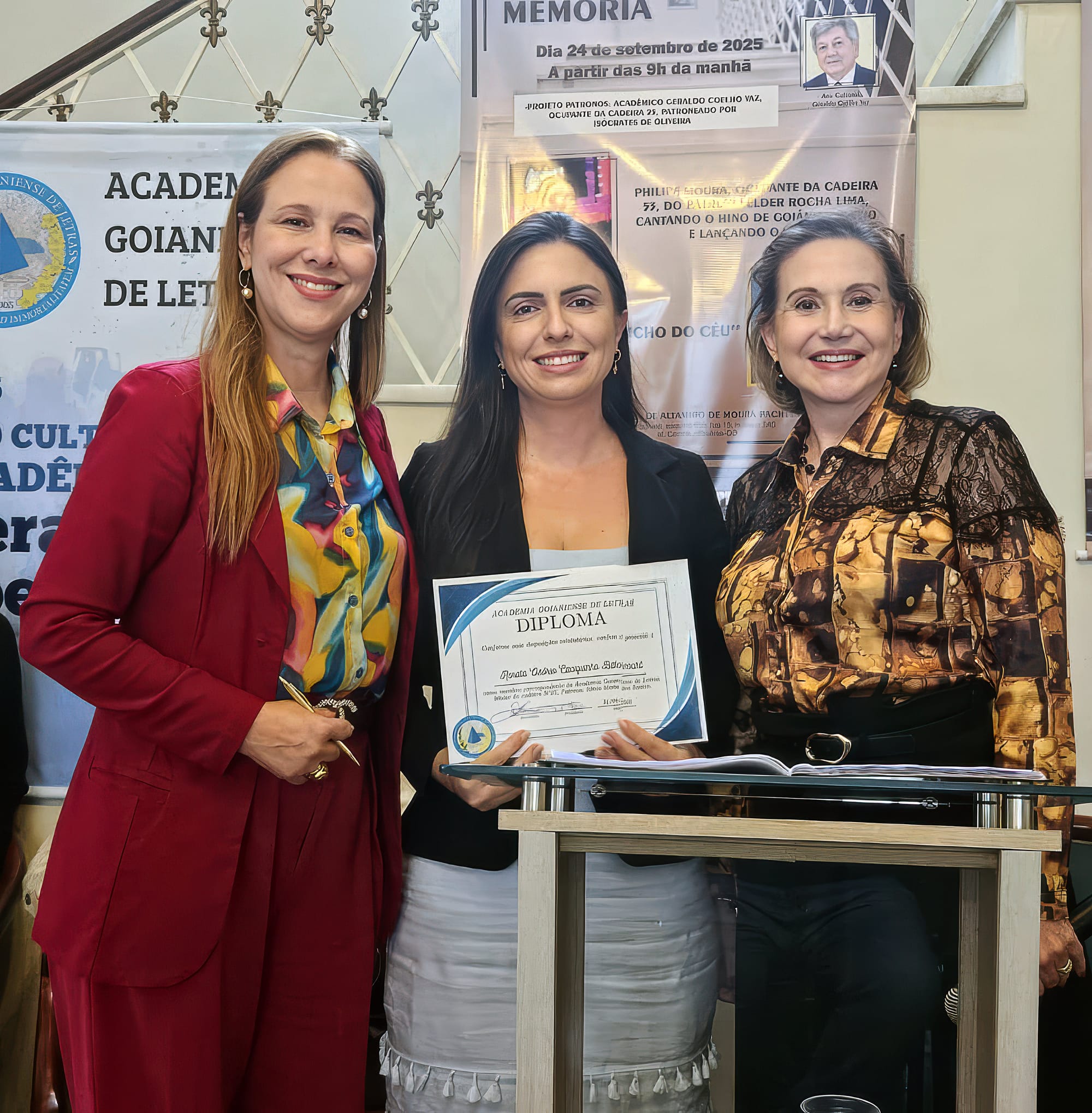 O ponto alto da manhã foi a posse de quatro novos membros correspondentes, que passam a integrar oficialmente a Academia Goianiense de Letras: