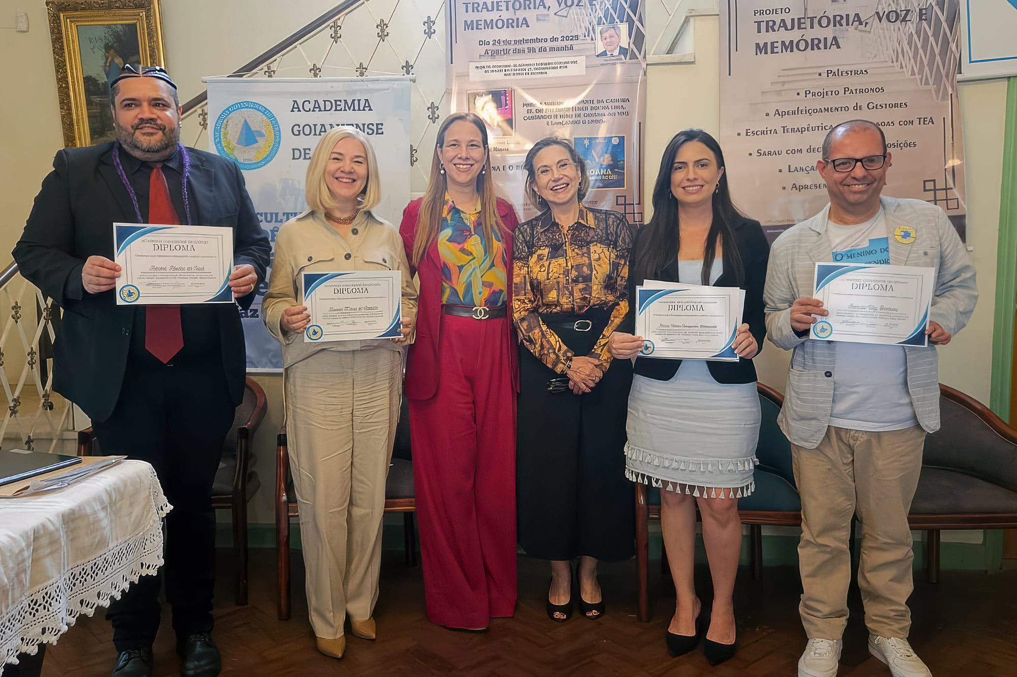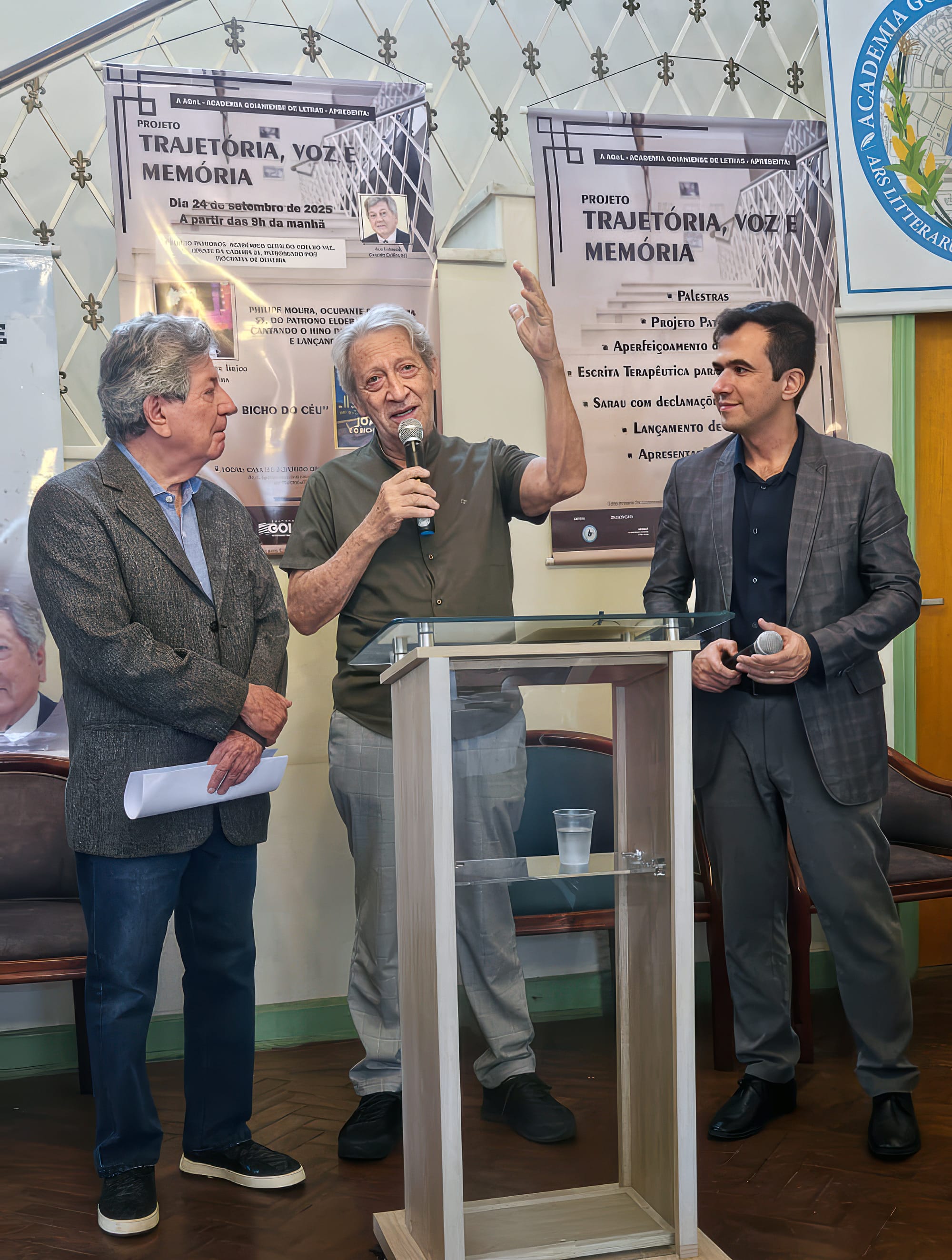 A manhã da última quarta-feira (24), na Casa Altamiro de Moura Pacheco, foi de celebração para a Academia Goianiense de Letras (AGnL). Dentro do Projeto Trajetória, Voz e Memória, aprovado pelo PNAB – Aldir Blanc, Ministério da Cultura e Secretaria Estadual de Cultura, a instituição realizou um encontro que uniu música, literatura e solenidade acadêmica, consolidando-se como um dos momentos mais expressivos do calendário cultural de 2025.
