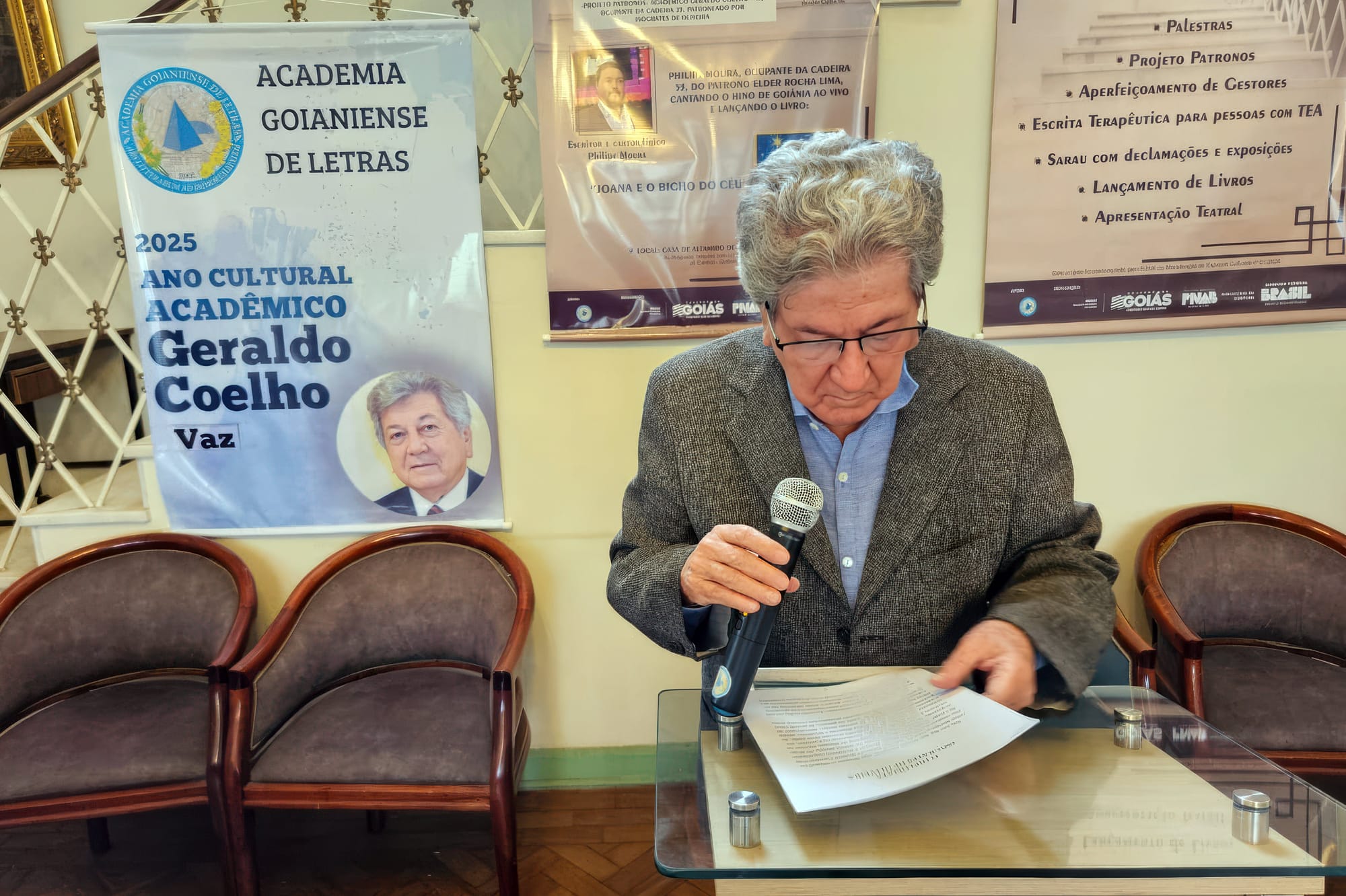 O evento começou às 9h com um lanche de boas-vindas, reunindo acadêmicos, autoridades, escritores e familiares em um ambiente de confraternização. Às 9h30, a cerimônia foi oficialmente aberta pela presidente da AGnL, Dra. Marislei de Souza Espíndula Brasileiro, que destacou a importância do projeto e agradeceu o apoio institucional da Secretaria Estadual de Cultura. Em seu discurso, a presidente lembrou que o ano de 2025 foi dedicado à memória e à obra do acadêmico Geraldo Coelho Vaz, cujo legado jurídico, literário e cultural o consagra como um dos grandes nomes da história intelectual de Goiás.